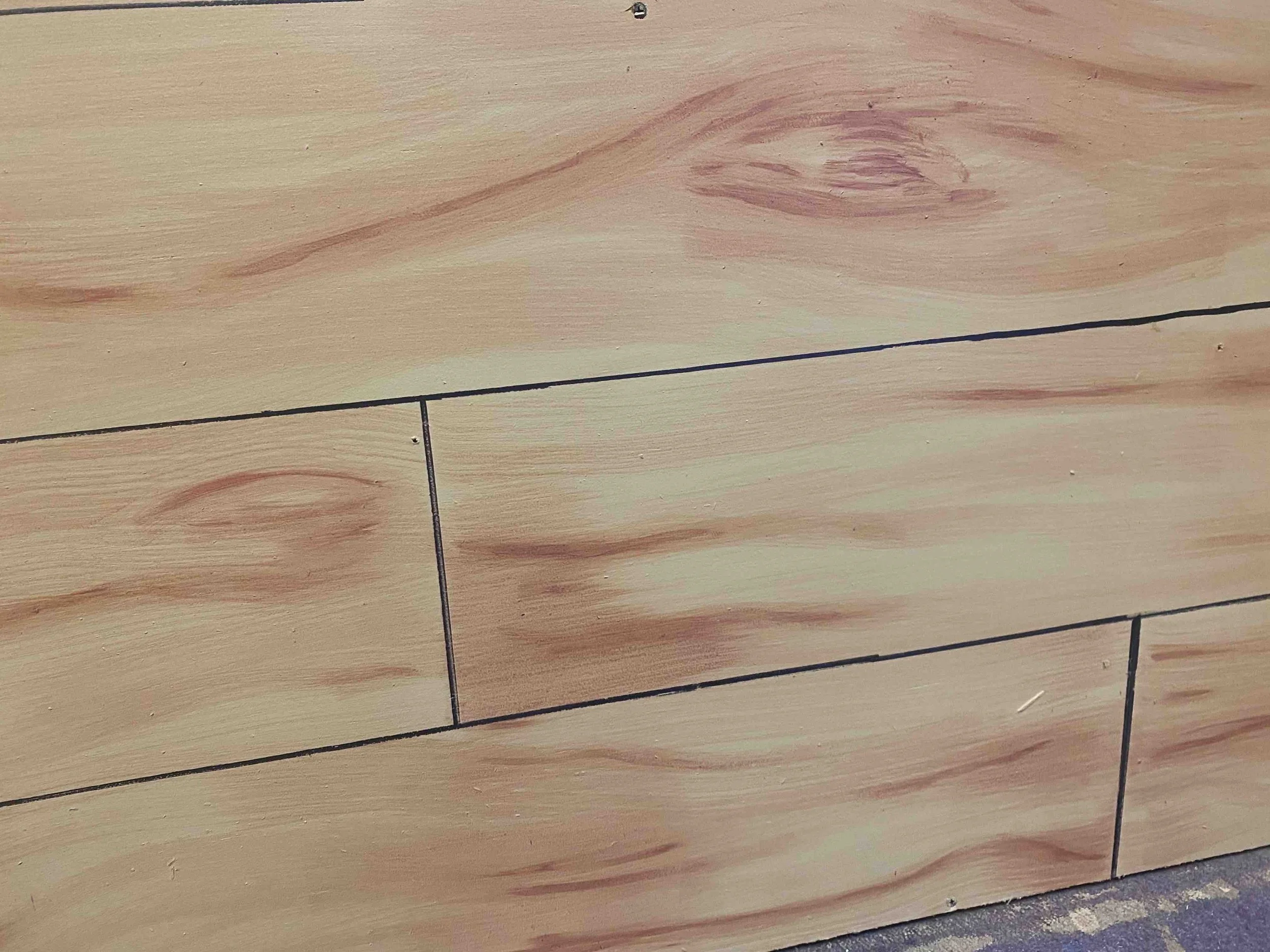 Golden Pond was my debut show at Stadium Theatre in Woonsocket, RI. It was a very simple set of wooden paneled walls. All of the wood grain texture was free handed.